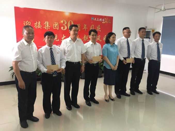 经过评委评分,最后市南公司张国青、任丽丽以一首《微笑》荣获桂冠,浦东公司麦超常、赵巧珍和二分公司顾文佳、张雯、邵益、周仲琪获得二等奖,市北公司汤友昌、一分公司耿涛和一分公司朱文亭、徐礼伟、潘荣宝获得三等奖,管玉明、戴建华等领导为获奖选手颁奖并合影留念。