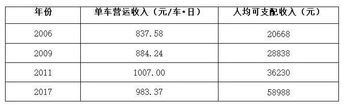 表3:历年巡游车司机单车营运收入与上海人均可支配收入比较